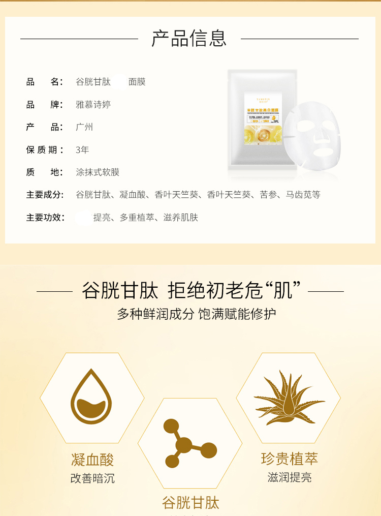 產品名稱: 谷胱甘肽面膜 凈含量: 保質期:3年 成分: