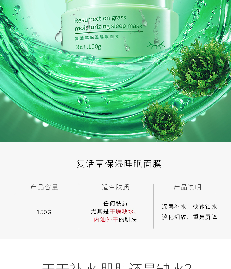 產品名稱: 復活草灌注睡眠面膜 凈含量: 保質期: 成分: